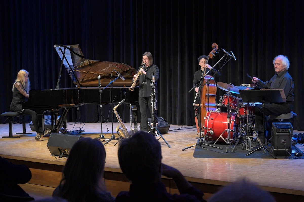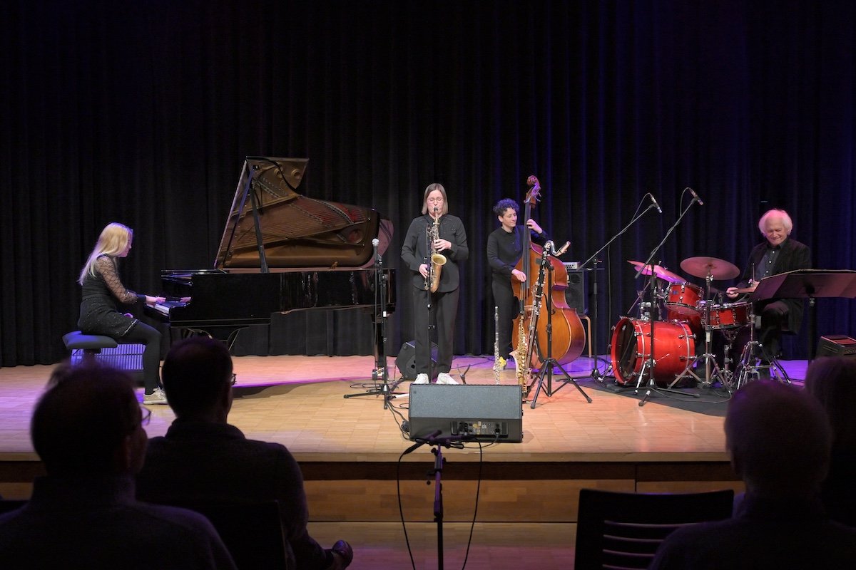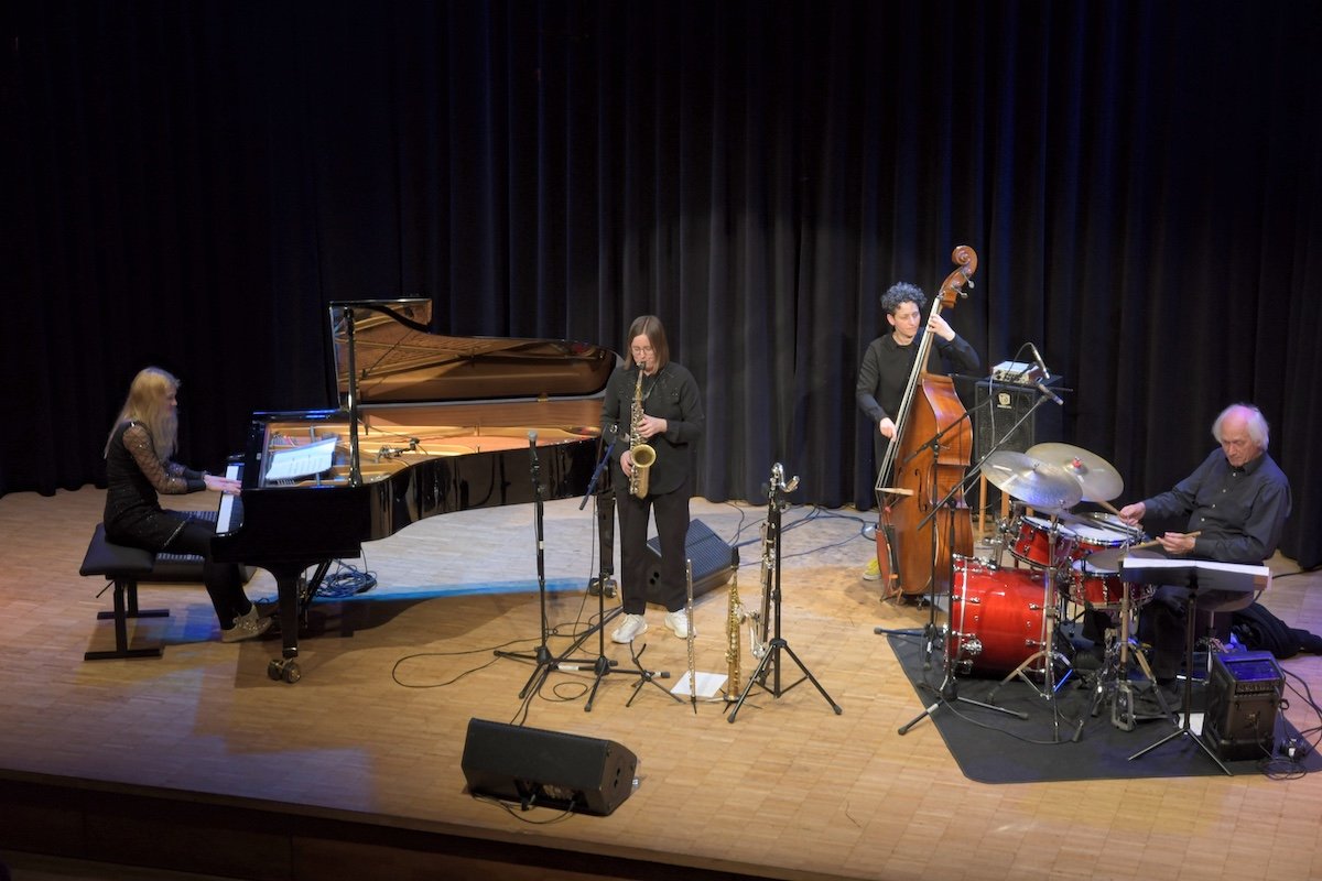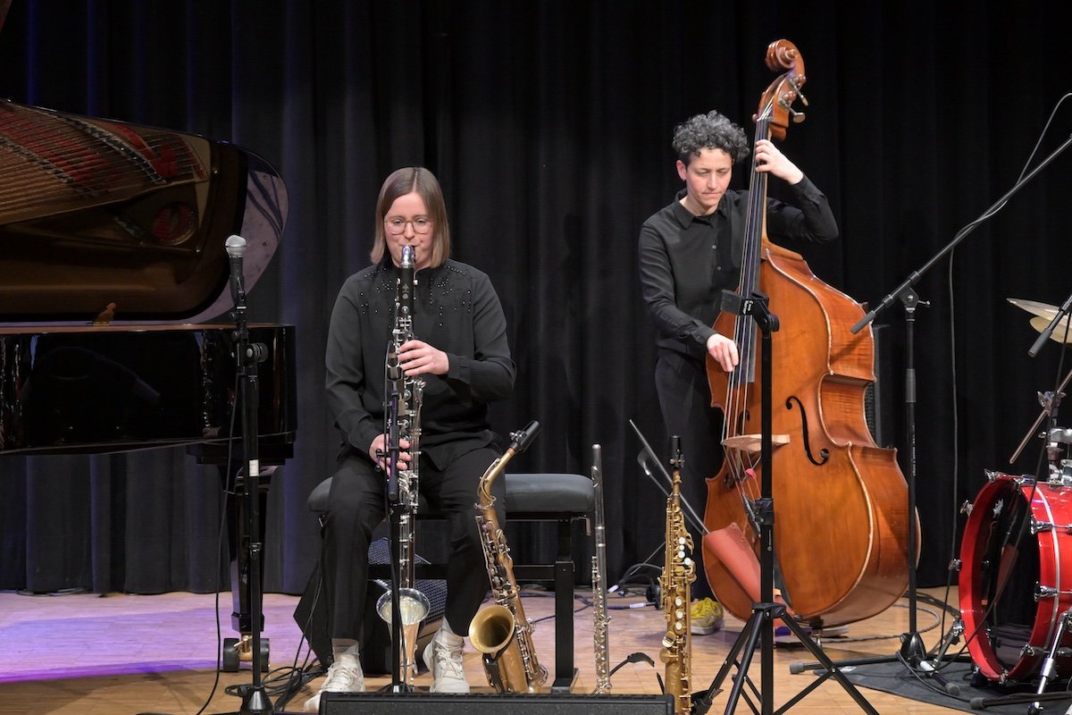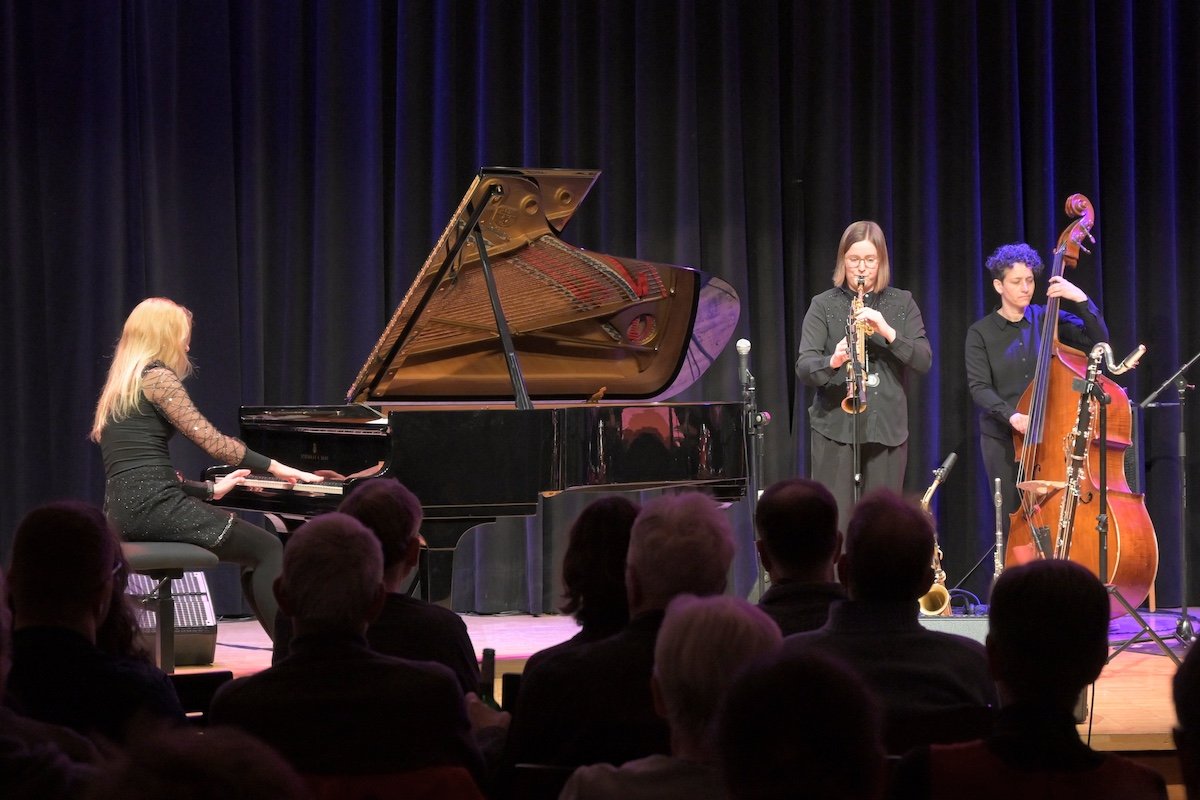 Das Ensemble, bestehend aus Carolin Heuser (Saxophon, Bassklarinette, Querflöte), Victoria Pohl am Klavier und Sabrina Damiani am Bass und Harald Rüschenbaum (Schlagzeug) überzeugte mit einem natürlichen und ausdrucksstarken Musikerlebnis und sichtbarer Spielfreude.