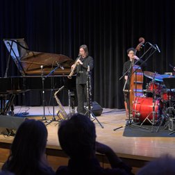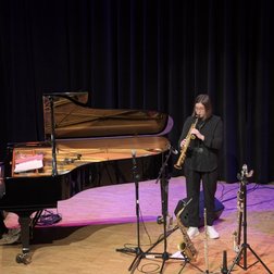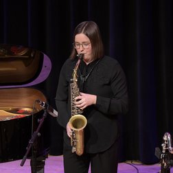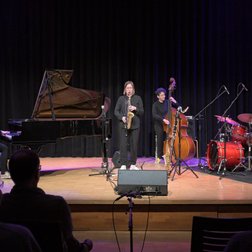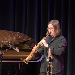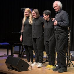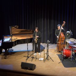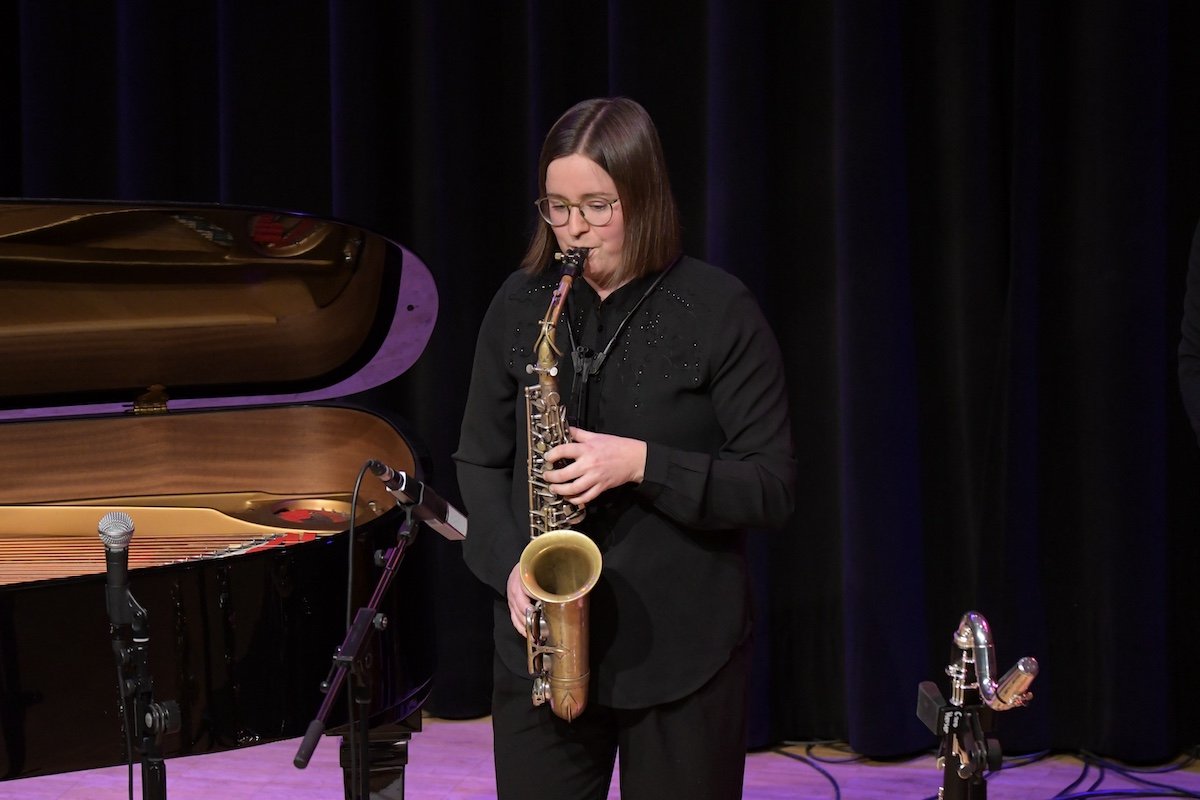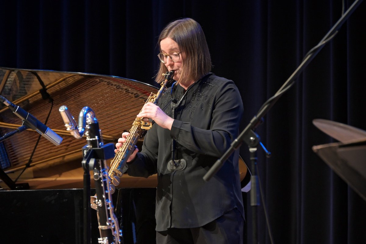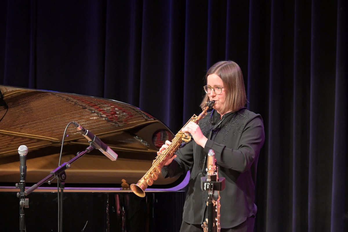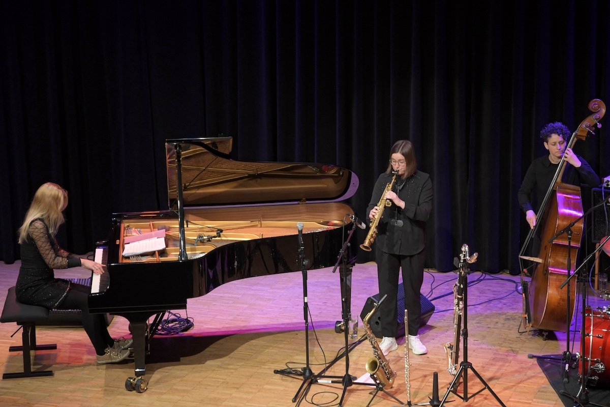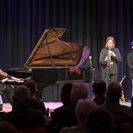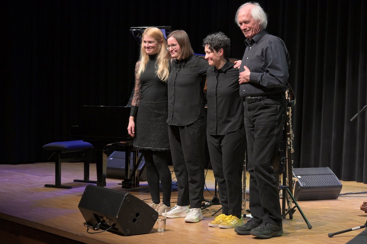 Das Ensemble, bestehend aus Carolin Heuser (Saxophon, Bassklarinette, Querflöte), Victoria Pohl am Klavier und Sabrina Damiani am Bass und Harald Rüschenbaum (Schlagzeug) überzeugte mit einem natürlichen und ausdrucksstarken Musikerlebnis und sichtbarer Spielfreude.