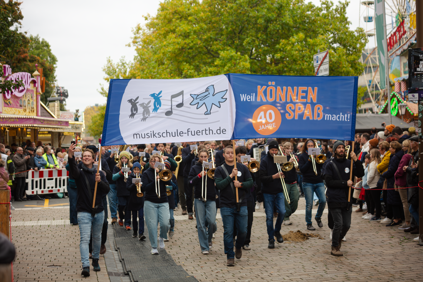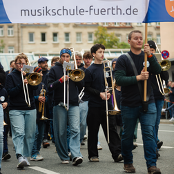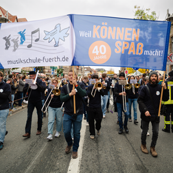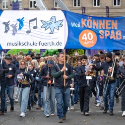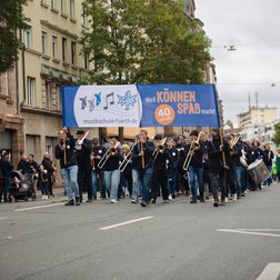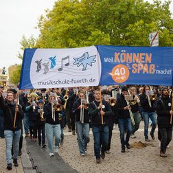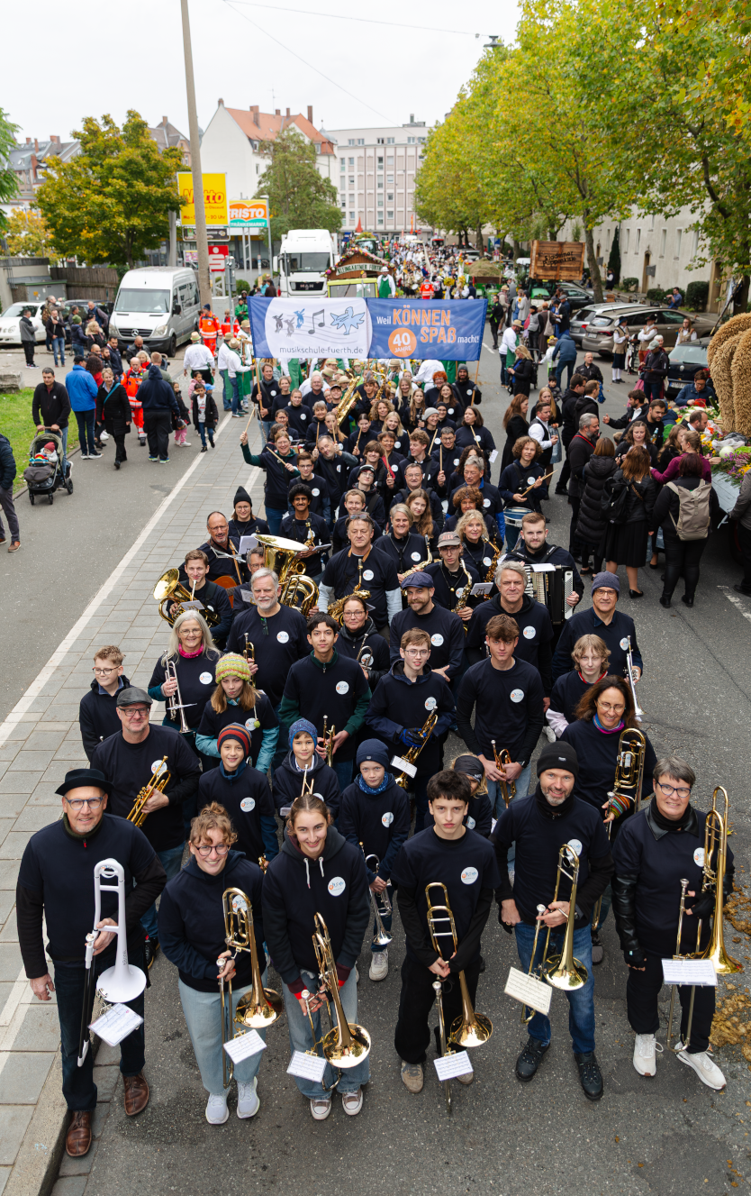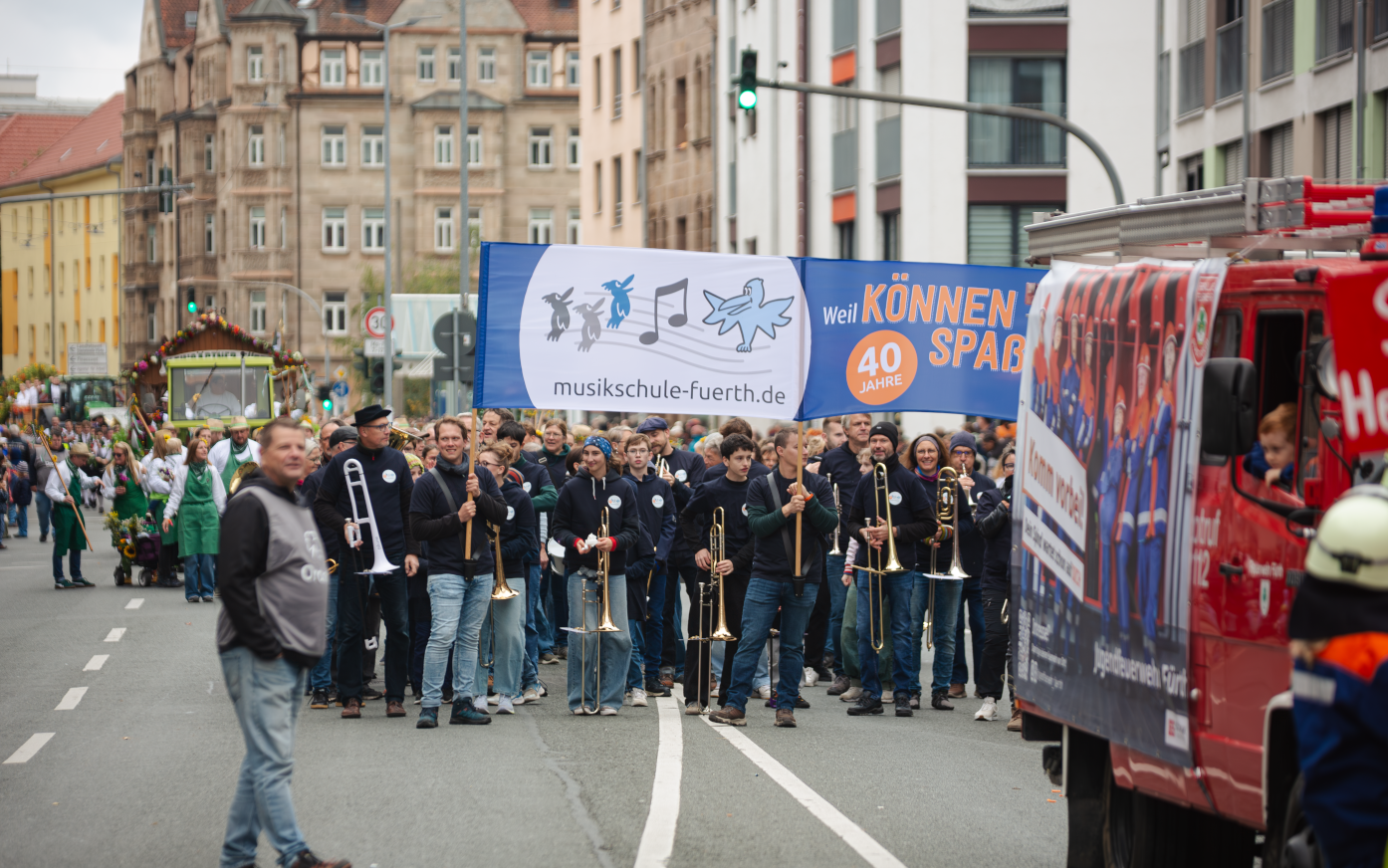 Zum Auftakt unseres Jubiläumsschuljahres nahm unsere eigens für diesen Anlass gegründete Marching-Band “FÜ-NKY Town” am traditionellen Erntedankfestzug anlässlich der Fürther Michaeliskirchweih teil. Was für ein tolles Erlebnis!!!