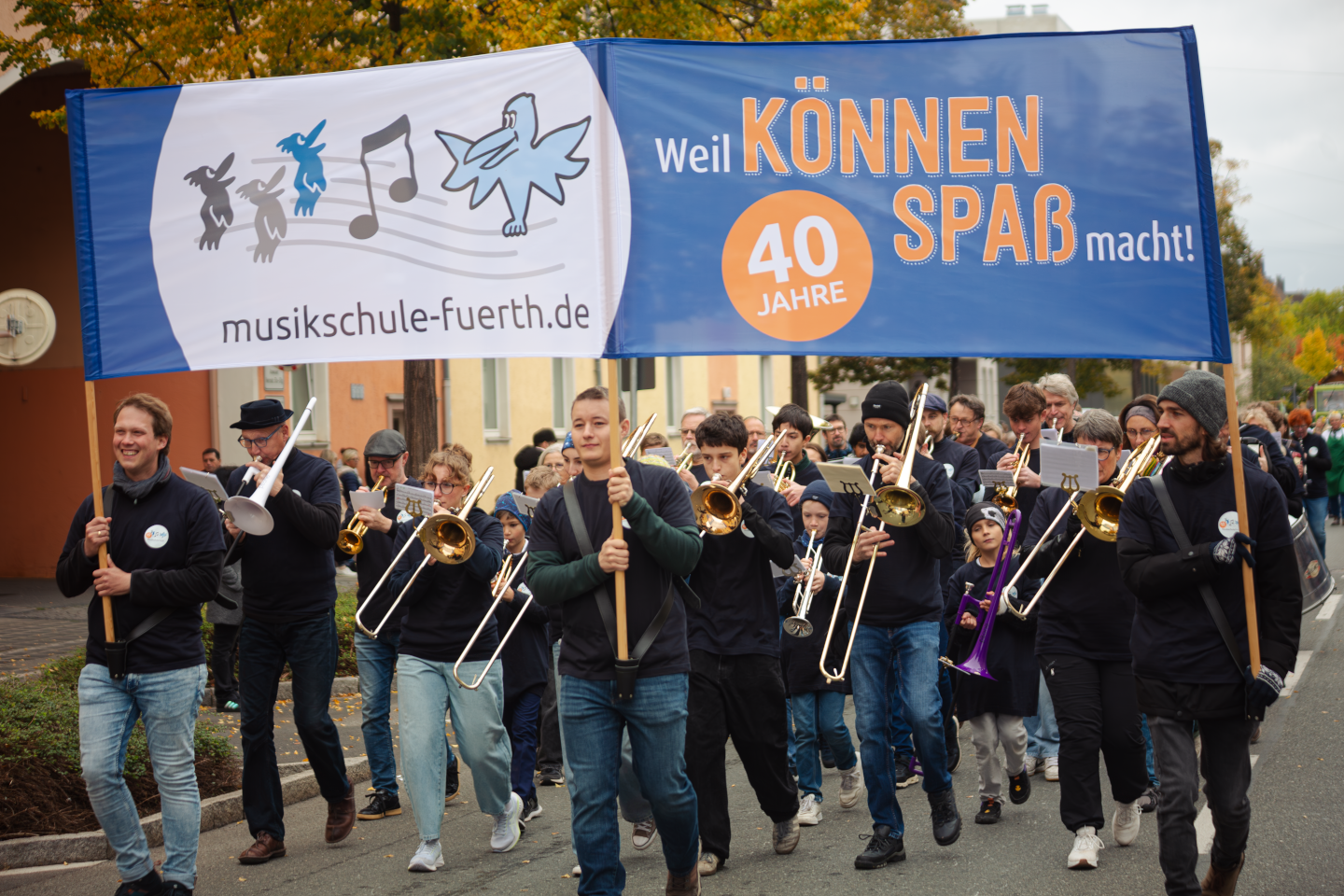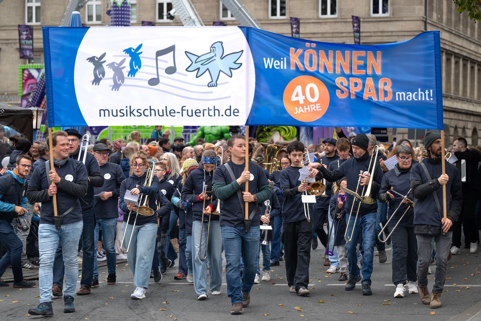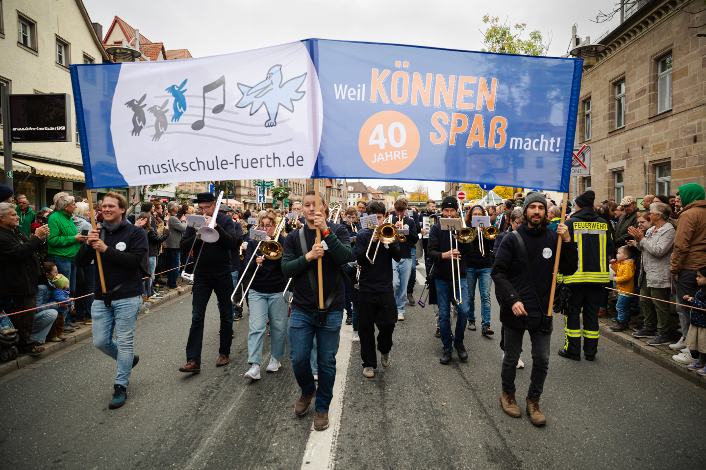 Zum Auftakt unseres Jubiläumsschuljahres nahm unsere eigens für diesen Anlass gegründete Marching-Band “FÜ-NKY Town” am traditionellen Erntedankfestzug anlässlich der Fürther Michaeliskirchweih teil. Was für ein tolles Erlebnis!!!