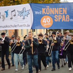 Vielen Dank allen Beteiligten aus unserer Musikschul-Familie – Schüler*innen, Lehrkräften, Schulleitung und Vorstandschaft des Trägervereins. Und vielen Dank an das Publikum, das am Straßenrand zu unserer Musik mitgegroovt hat. Es war ein Riesenspaß!