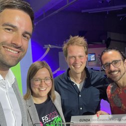 Carolin Heuser (Stellv. Schulleitung der Musikschule Fürth) und Simon Steinberger (Vorstand des gemeinnützigen Trägervereins der Musikschule Fürth) die GUNDA in Empfang. Gemeinsam mit ihnen freute sich auch Jens Ravari (Leiter des Fürter Kulturforums), das bei der Ausrichtung des #FIS seit Jahren ein verlässlicher Partner ist.