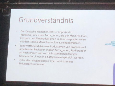 In Fürth veranstaltete Harald Schwiewagner, Leiter eines Seminars für Lehramtsanwärter*innen, in Kooperation mit den Veranstaltern des Filmpreises und in Zusammenarbeit mit der Musikschule Fürth, einen Seminartag zum Thema Menschenrechte.