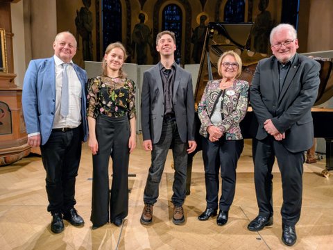 Unser ehemaliger Schüler Lucca Keller (mittig im Bild) erhielt beim LIONS Musikwettbewerb – Klavier des Lions Club Distrikt 111 den Sonderpreis Inklusion. Der mit 1000 € dotierte Preis wird an Menschen mit Behinderung und besonderer Begabung verliehen.