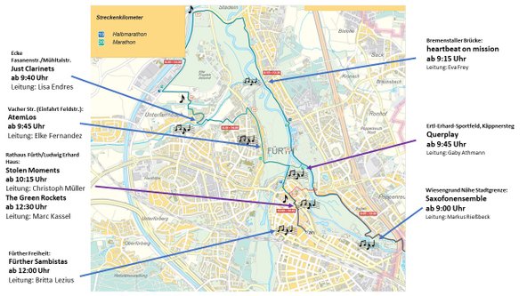 In Fürth erhalten selbst Sportveranstaltungen eine musikalische Note, wenn die Ensembles der Musikschule die Läufern*innen entlang der Wegstrecke anfeuern.